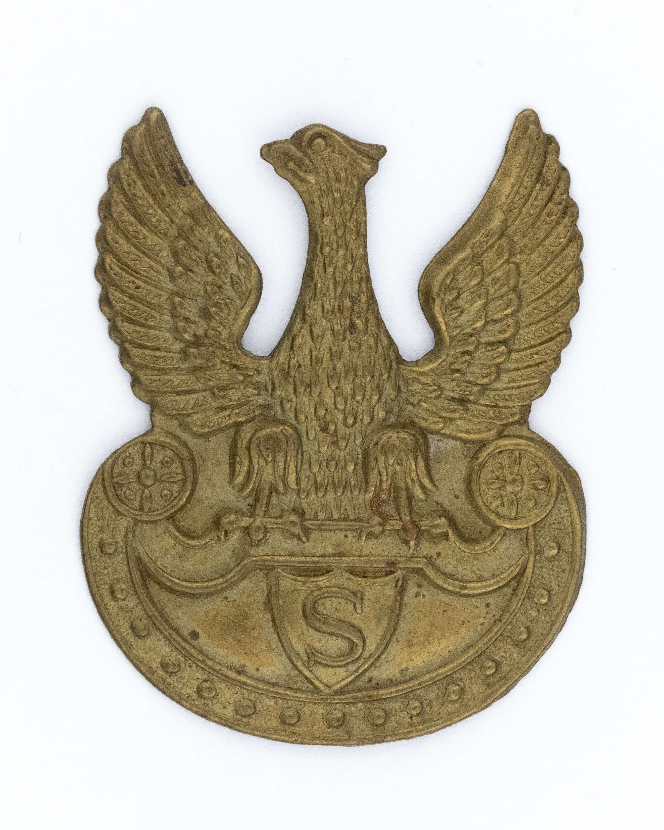 Orzeł odtworzony Związek Strzelecki. Skarnik Fiszbein Warszawa. 36,5x29mm. Wykonany z mosiądzu. Rewers z kontrą. Brak mocowania. Lit. Tomasz Zawistowski, Polskie Orły do czapek w latach 1900-17, str.256. Stan bardzo dobry.
