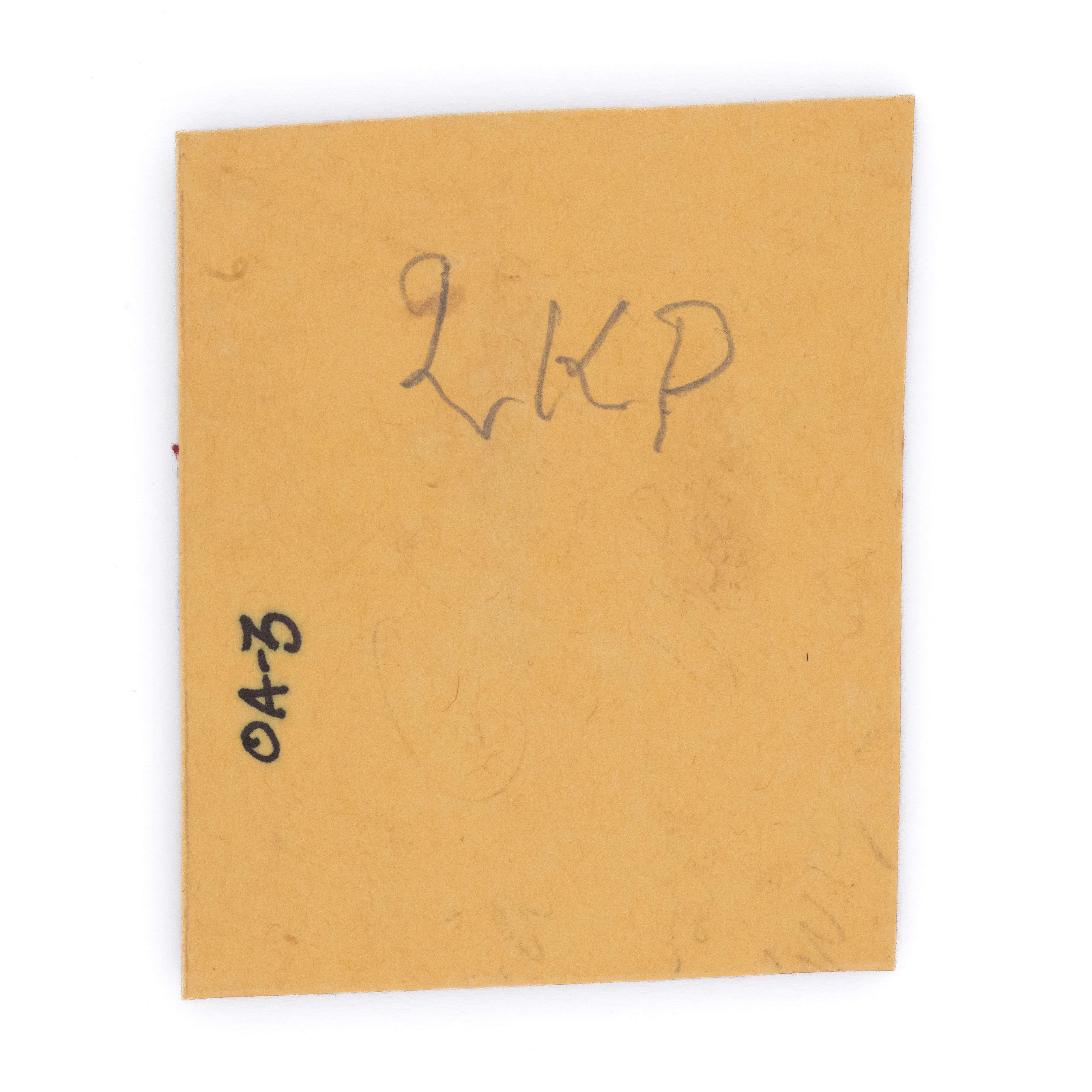 Orzeł haftowany maszynowo. 57 x 43mm. Haft maszynowy na materiałowej podkładce w kolorze khaki. Umieszczony na tekturowej podkładce oklejonej czerwonym materiałem, na odwrocie opis- 2KP. Lit. Tomasz Zawistowski, Polskie orły do czapek w latach 1939-45, str. 71-2. Stan bardzo dobry.