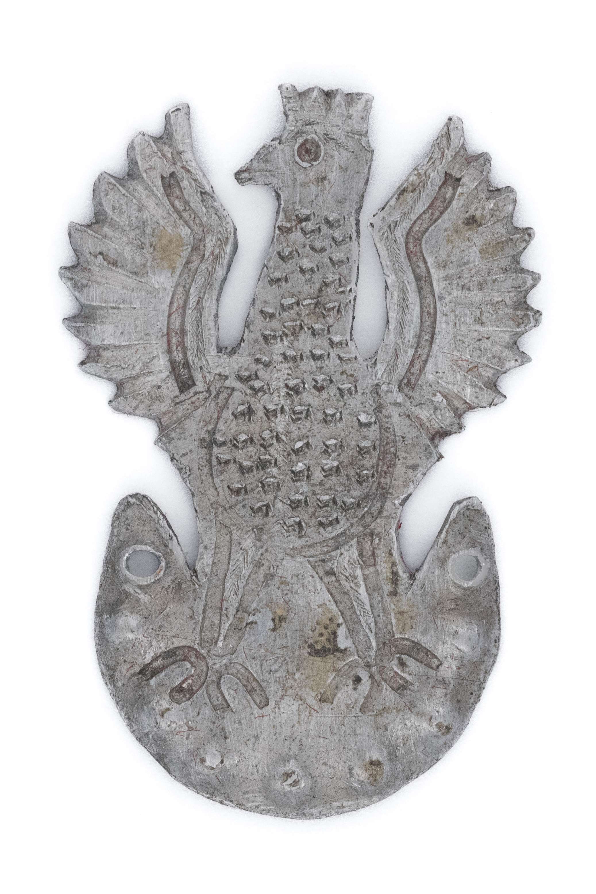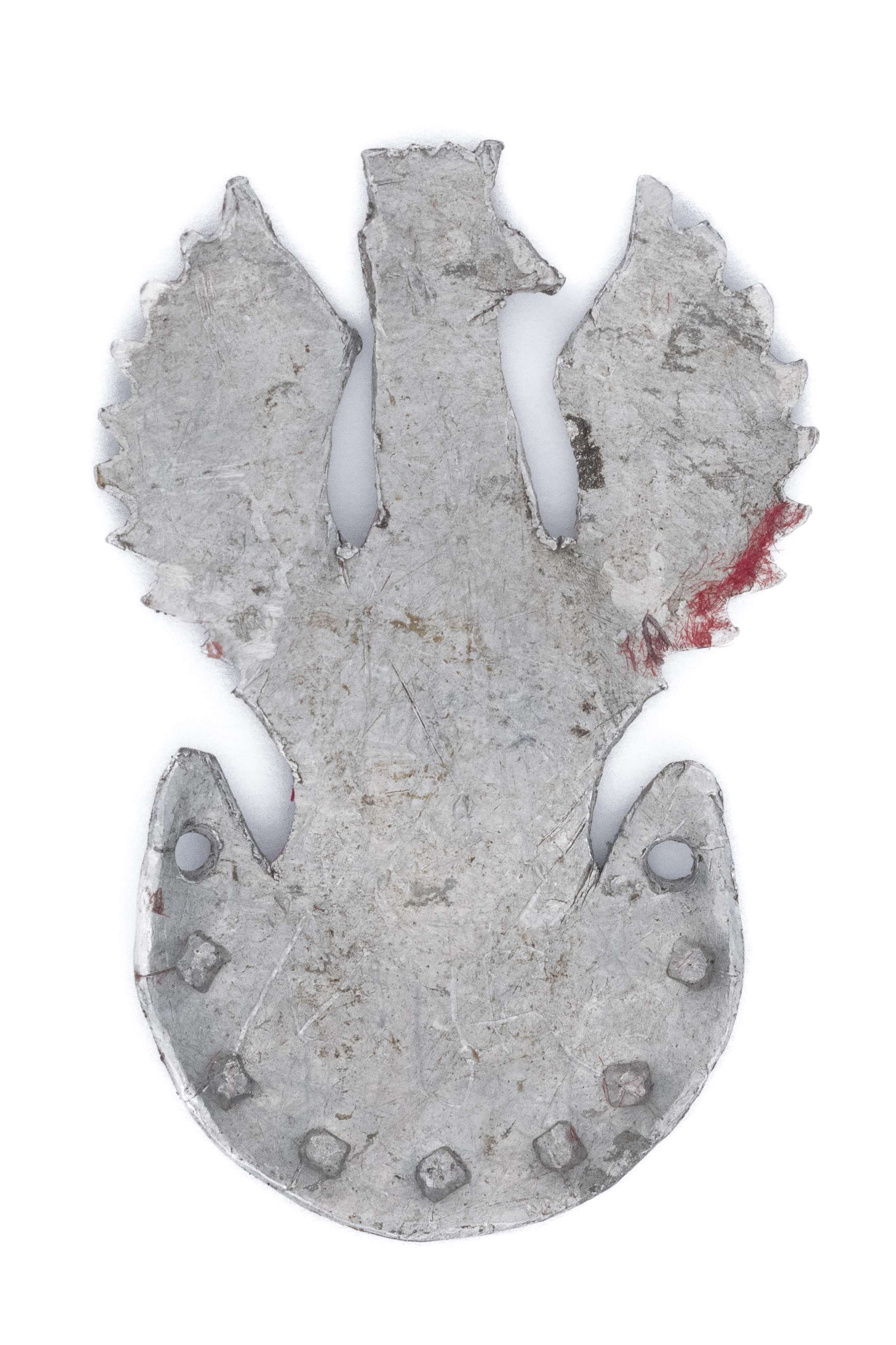 Orzeł wykonany ręcznie w ZSRR(?). 38 x 25mm. Wykonany z aluminium, rytowany. Rewers gładki. Dziurki do przyszycia. Według przekazu pochodzi z dawnej kolekcji W. Gawrona. Lit. Tomasz Zawistowski, Orły do czapek w 2. Korpusie Polskim, str.70-81.
