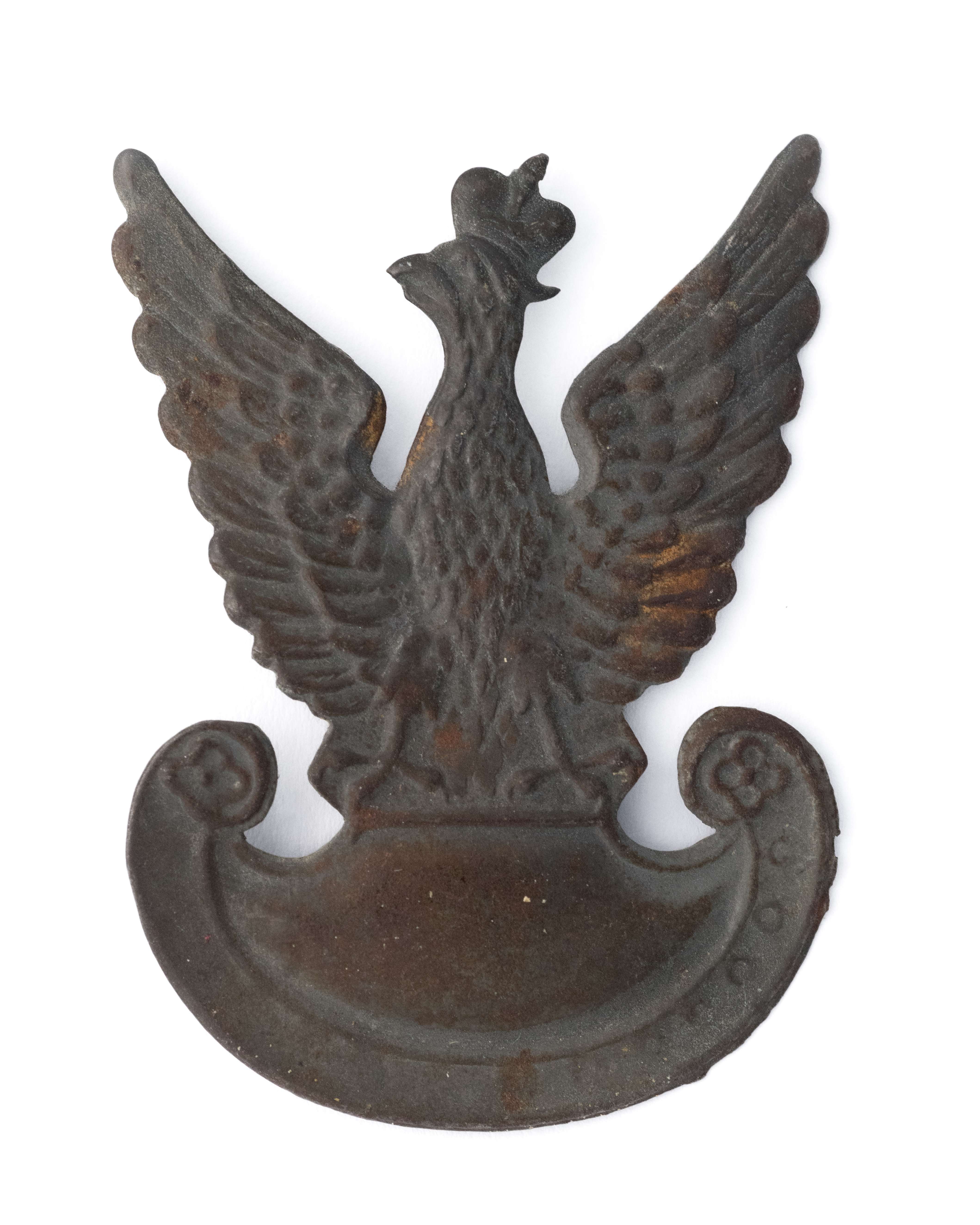Orzeł wzór 19 produkcji okupacyjnej z matrycy przedwojennej. 55x39. Wykonany z blachy stalowej. Rewers z kontrą. Lit. Tomasz Zawistowski, Polskie orły do czapek w latach 1939-45, str. 184. Orły tego wzoru noszone były w oddziale legendarnego "Ponurego". Stan bardzo dobry.