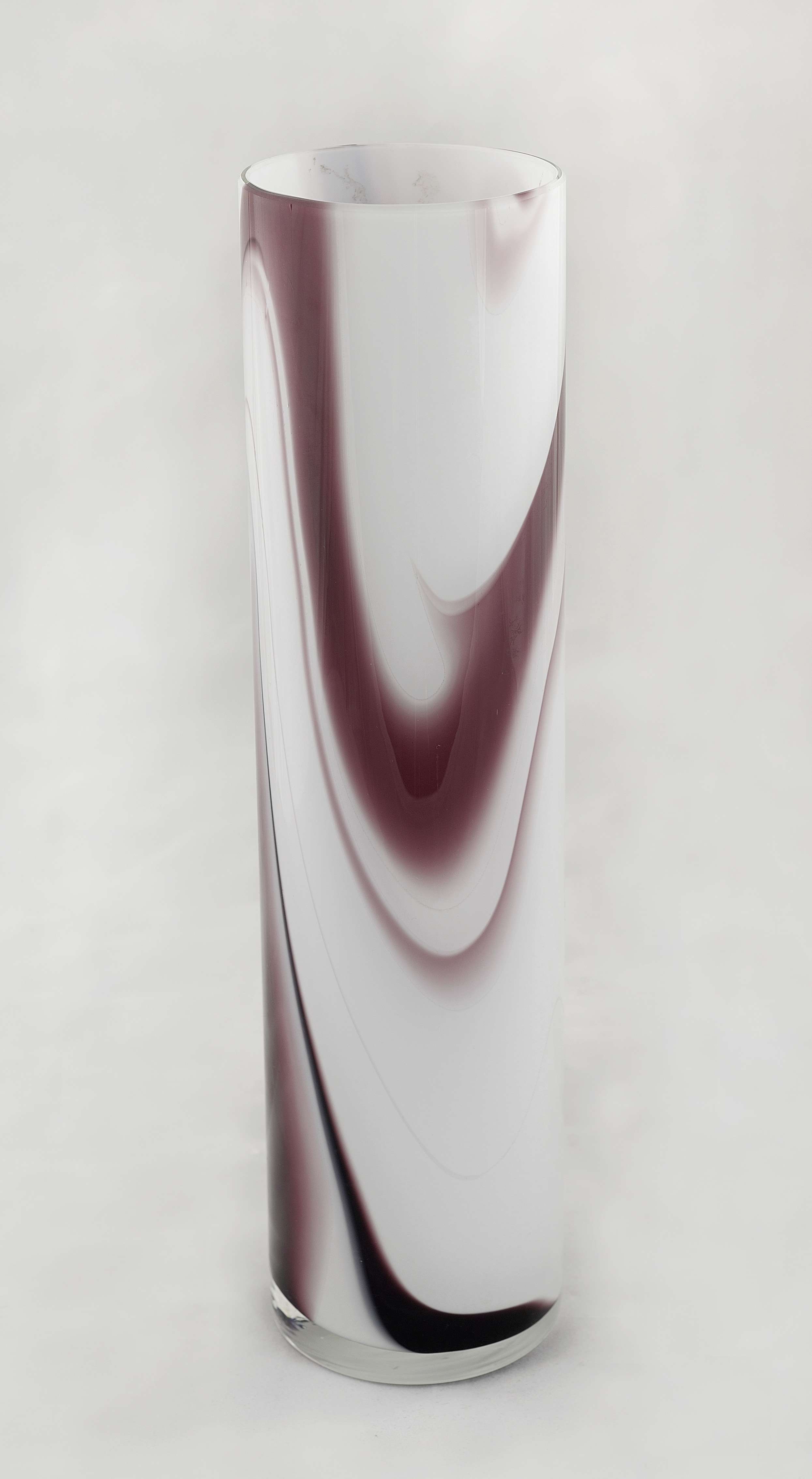 Szkło warstwowe, marmurkowe w kolorach bieli brązu i fioletu, wys. 28 cm,