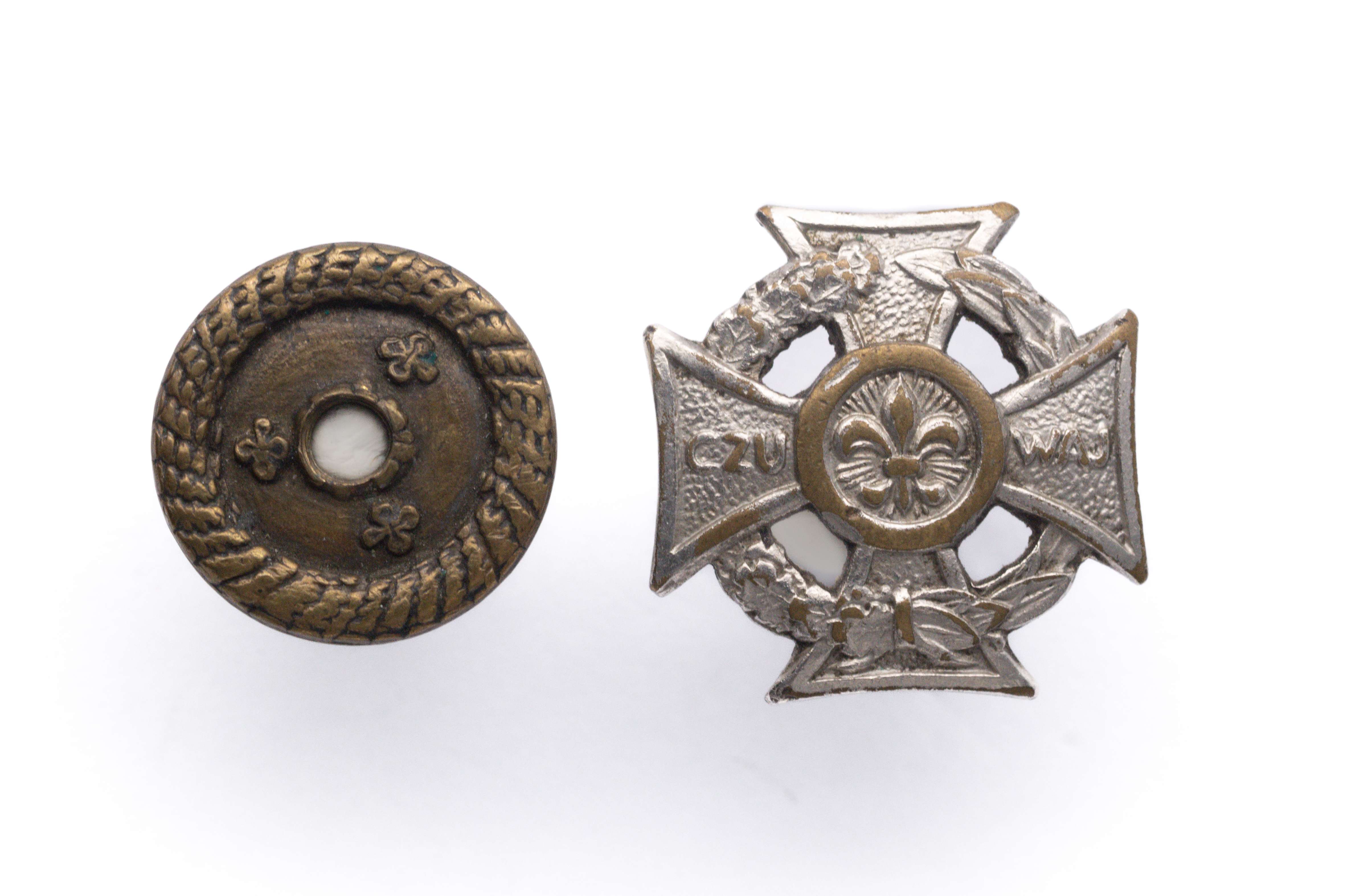 Miniatura krzyża harcerskiego wykonywana przed II Wojną Światową przez zakład Bronisława Grabskiego w Łodzi Miniatura krzyża harcerskiego wykonywana przed II Wojną Światową przez zakład Bronisława Grabskiego w Łodzi